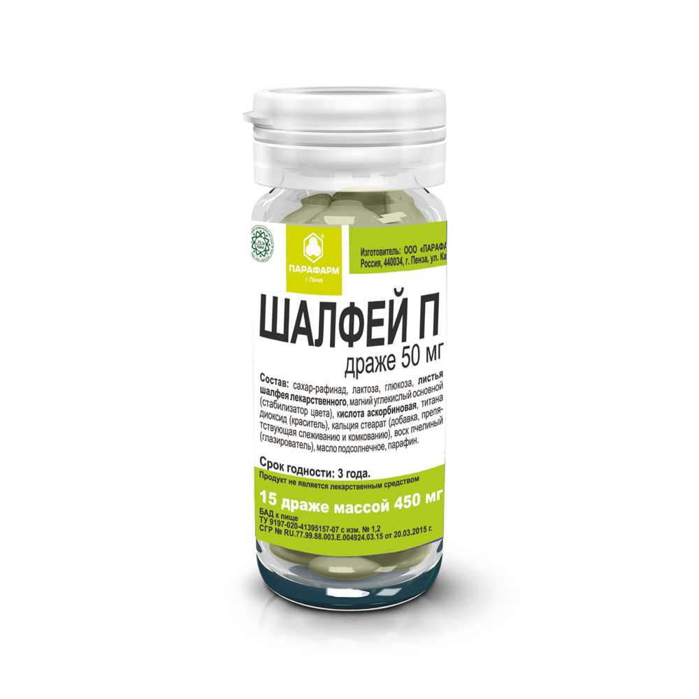 Листья шалфея лекарственного (криопорошок), кислота аскорбиновая (витамин С). |
