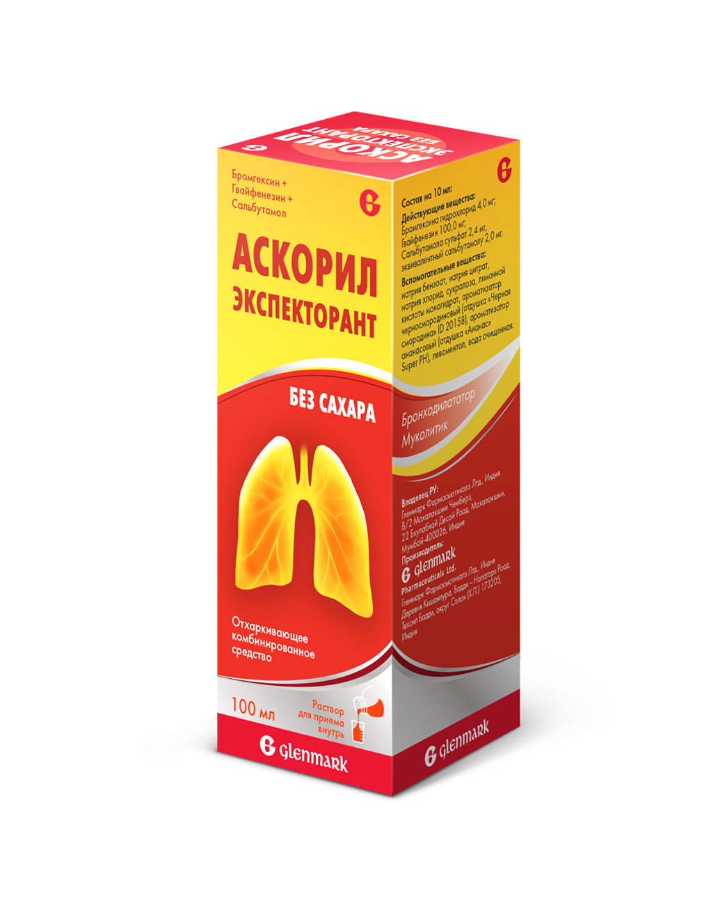 По 100 мл, 200 мл во флаконы из полиэтилентерефталата оранжевого цвета с навинчивающейся алюминиевой крышкой с контролем первого вскрытия белого цвета и красным логотипом «G». Флакон снабжен мерным колпачком из ПЭВП вместимостью 10 мл с логотипом «G». 1 флакон вместе с мерным стаканчиком и инструкцией по применению помещают в картонную пачку. |